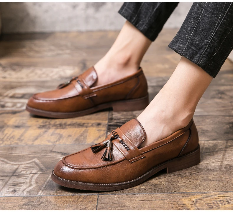 Make a bold statement with these pointed casual moccasins, crafted for men who appreciate standout style and all-day comfort. Featuring a fringed slip-on design and durable beef sole, these shoes are ideal for fashion-conscious professionals, stylists, and urban trendsetters.