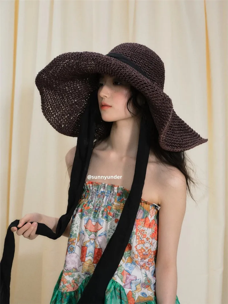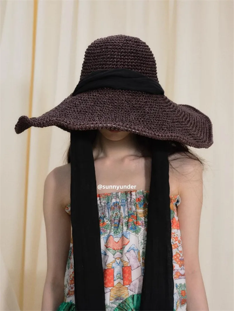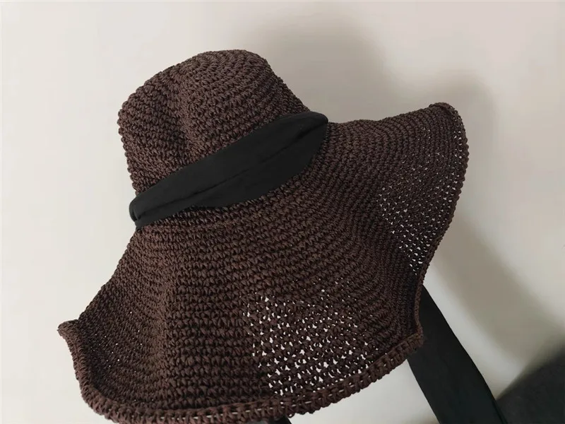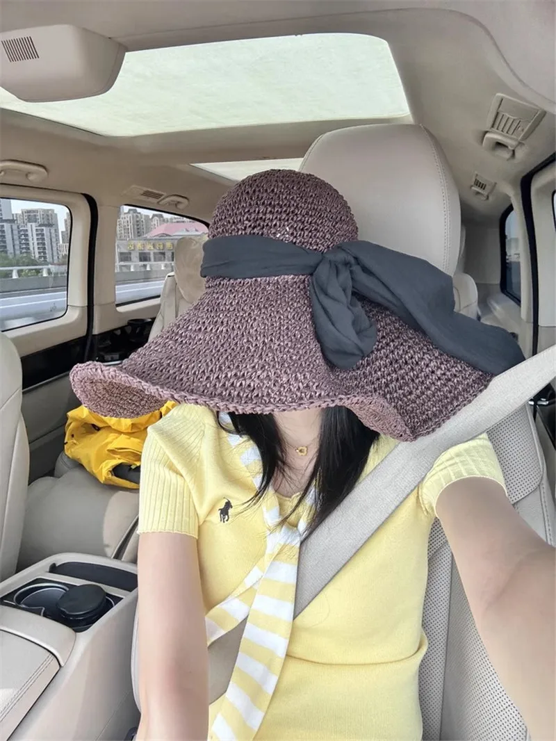 🌞 Chic Summer Wide Brim Paper Grass Sun Hat – Foldable & Packable with Long Ribbon