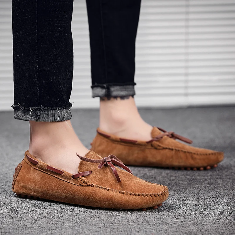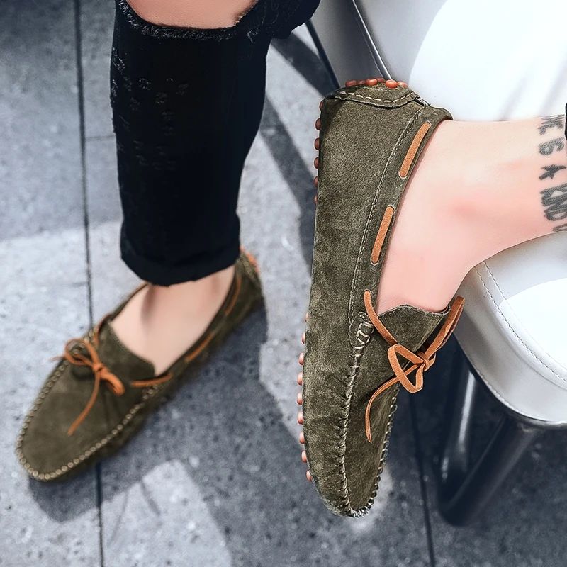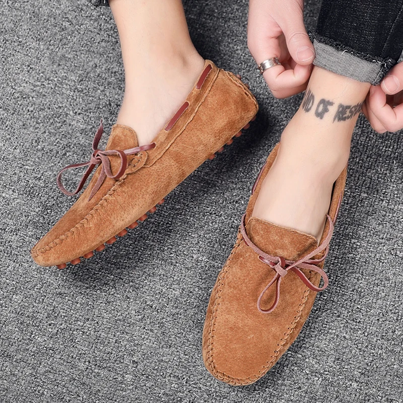 👞 Men’s Suede Leather Slip-On Loafers – Handmade Breathable Flats